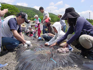 今年も晴天に恵まれ開園式と夏野菜植付イベントの始まりです。まず最初は毎年恒例になっている「石とり作業」から。