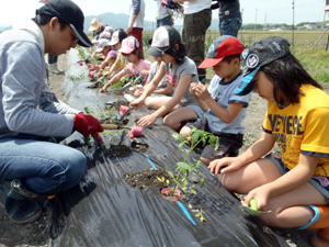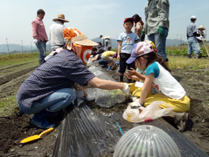 スイカ・カボチャ・メロンの苗植えが終了しました。 |